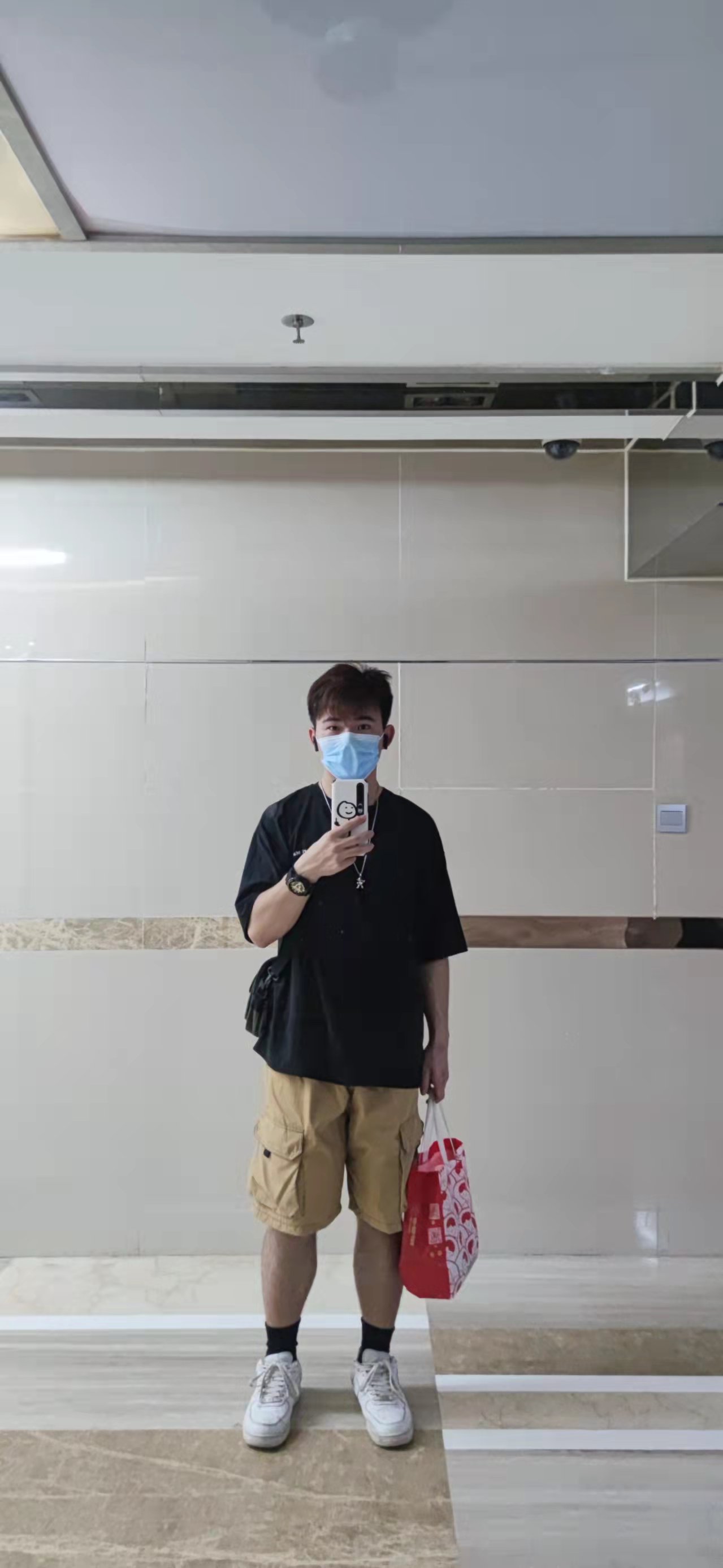 今天天气又回暖了,变得有点热所以就短袖短裤出门了。
