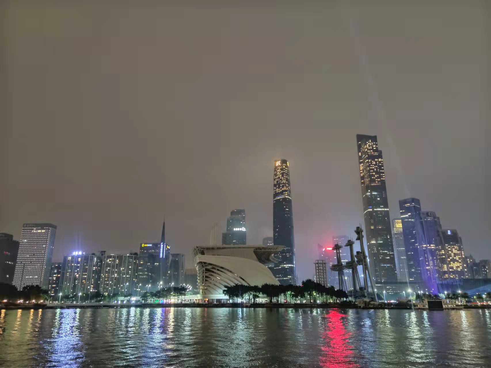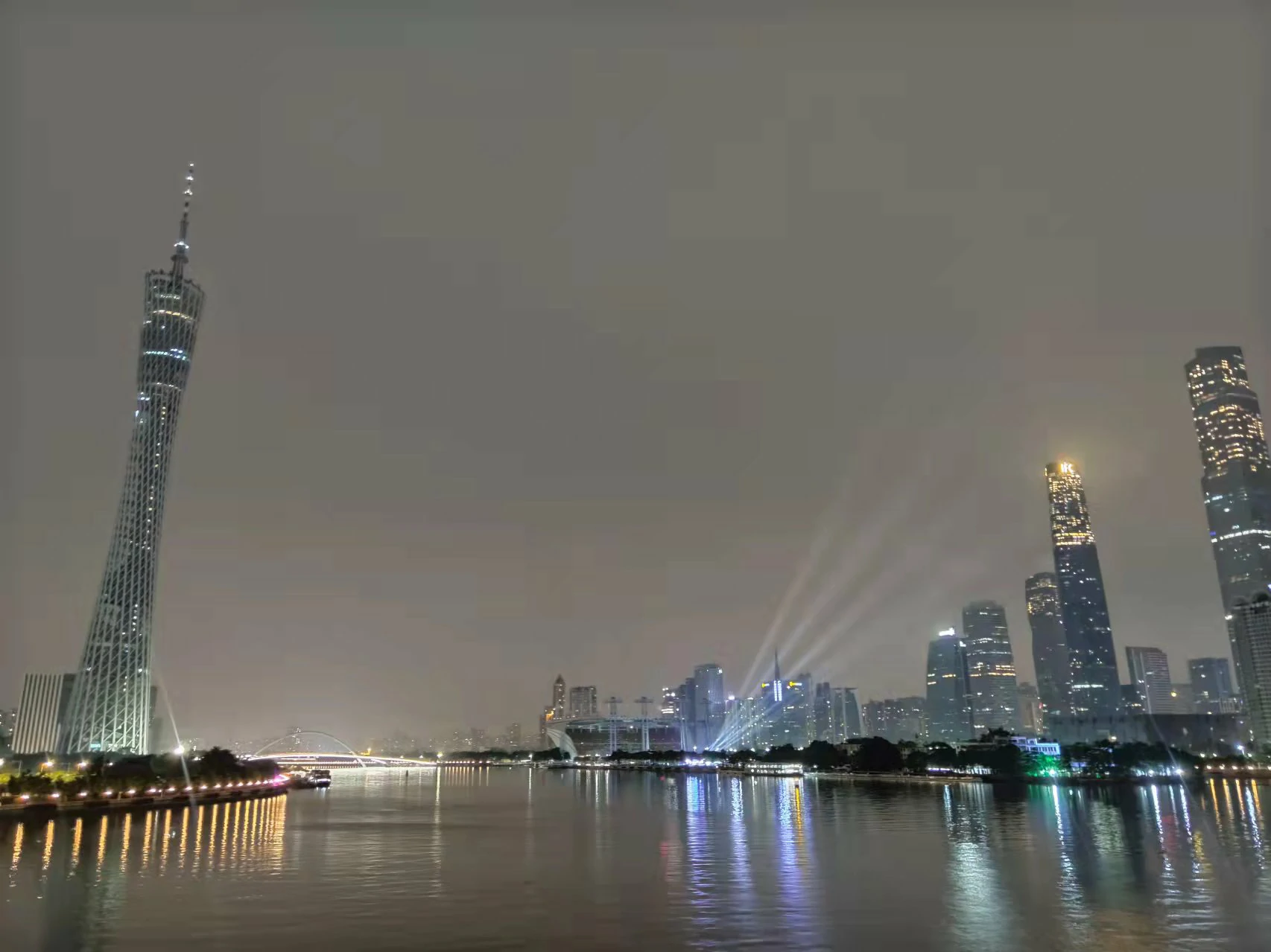 到了晚上10点多超市还有步行街陆陆续续的都关了灯没有了什么人,然后我们也走了奔赴下一个目标广州塔,到哪里已经10点半左右了,不知道为什么这次早早小蛮腰的等就关了,我一直以为小蛮腰晚上是不关灯的,不过也挺好的,有了不一样的体验,关灯后的小蛮腰还是很好看的,我们在江边散步,走上到猎德大桥上面,见到了繁华的CBD另外的一面,还是那么美。