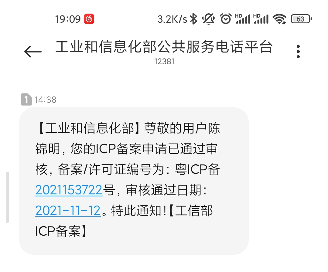 恭喜~~~,喜提备案一枚